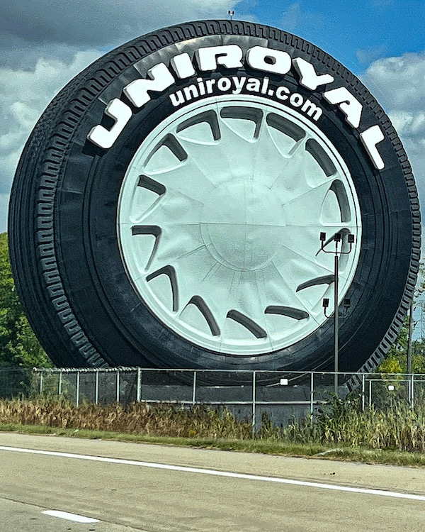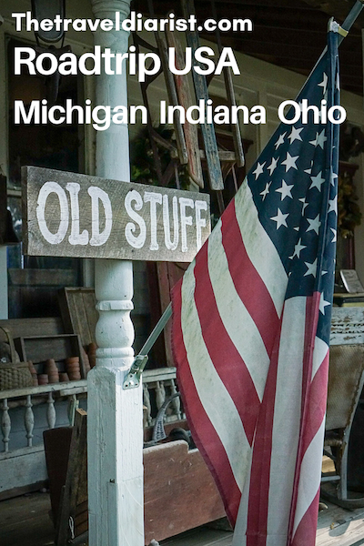 The rain hits hard, lightning flashes, we plough troughs of water around the car, bypassing Kalamazoo cancelling our hotel in nearby Paw Paw (such great names) eventually driving out of the rain over the State border in to Indiana where we call it a day in Elkhart.