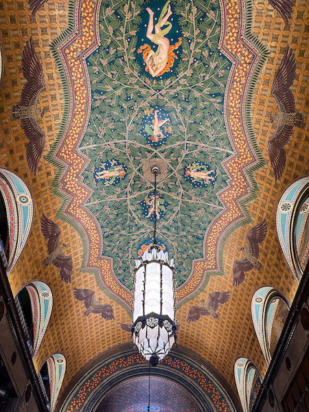 Driving in to Downtown Detroit to ogle the lobby of the gorgeous Fisher Building. Opened 1929, 30 floors, a 3-storey arcade decorated with mosaics, frescoes, marble and brass…architect Albert Khan. Now a mixed use business retail events space and home to The Fisher Theatre.