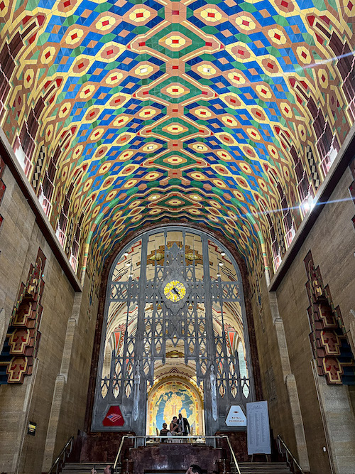 Back in the car leaving the local neighbourhoods we drive to the downtown financial district of Detroit to see the national historic landmark Guardian Building. Built in 1928 and originally known as the Union Trust Building the architecture firm was Smith Hinchman and Grylls and the head designer Wirt C. Rowland. It’s an unusual and colourful showstopper of Art Deco and Art Moderne style…the interior a blend of Native American, Aztec, and Arts & Crafts influences. Sadly the main hall was closed for a private event but the main lobby ceiling alone is worth the visit.