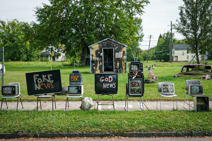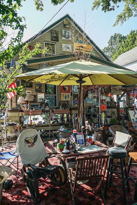 We drive to the Slavic neighbourhood of Cleveland to take a look at George Masaveg’s art home. George started buying mass produced art, waterproofing them and across two adjoining properties, began covering both with the ‘paintings’. It’s since consumed his front garden and porches and spilled out on to the sidewalk. It’s fun but in fairness it looks like someone with a hoarding problem.