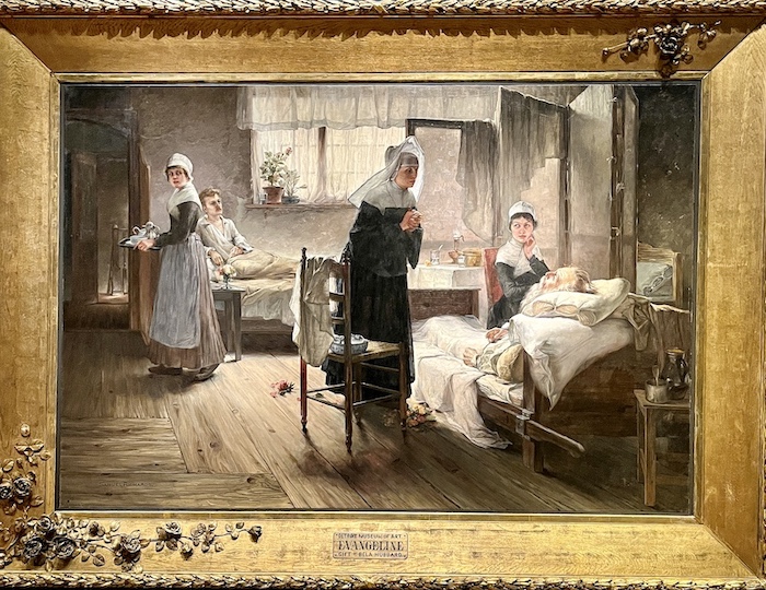 Other favourite pieces are (girl in chair) ‘The Communicant’ by Gary Melchers (circa 1900). ‘Evangeline Discovering her Affianced in the Hospital’ by Samuel Richards (1887-9).