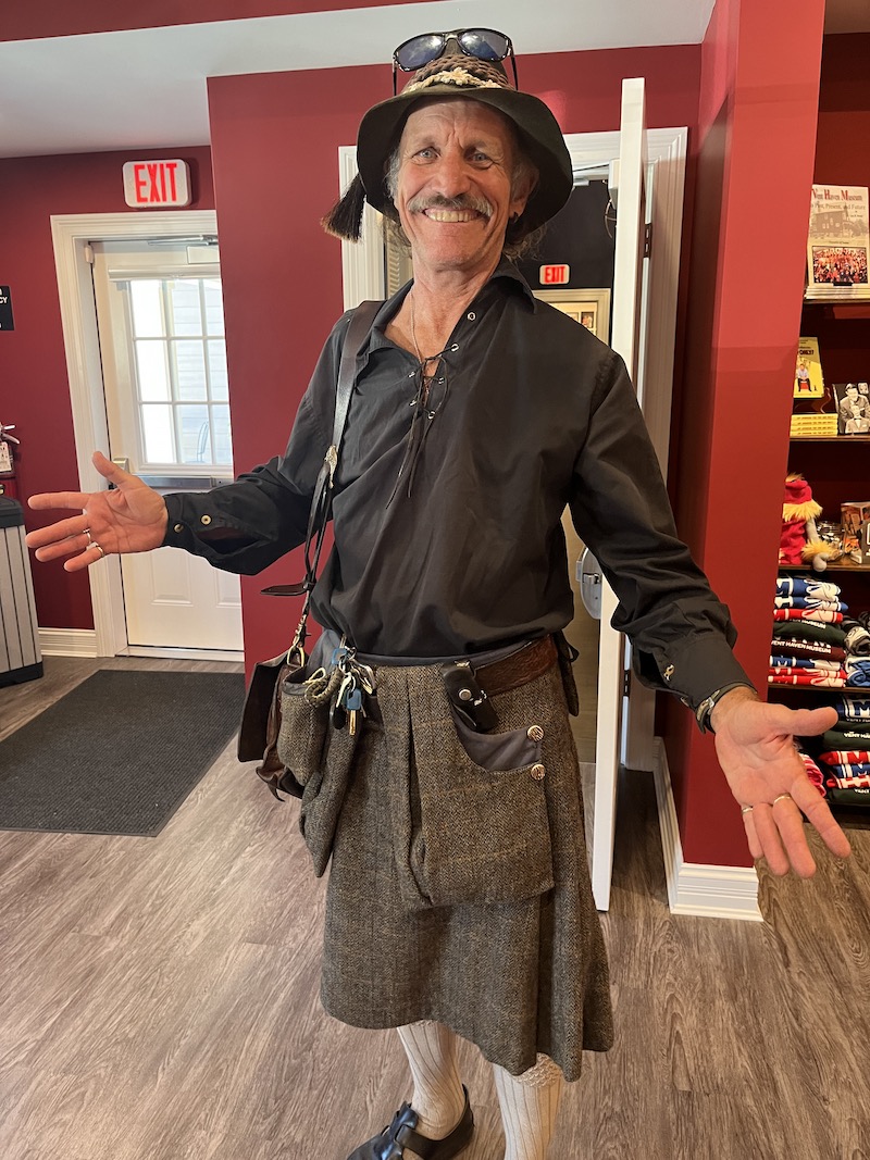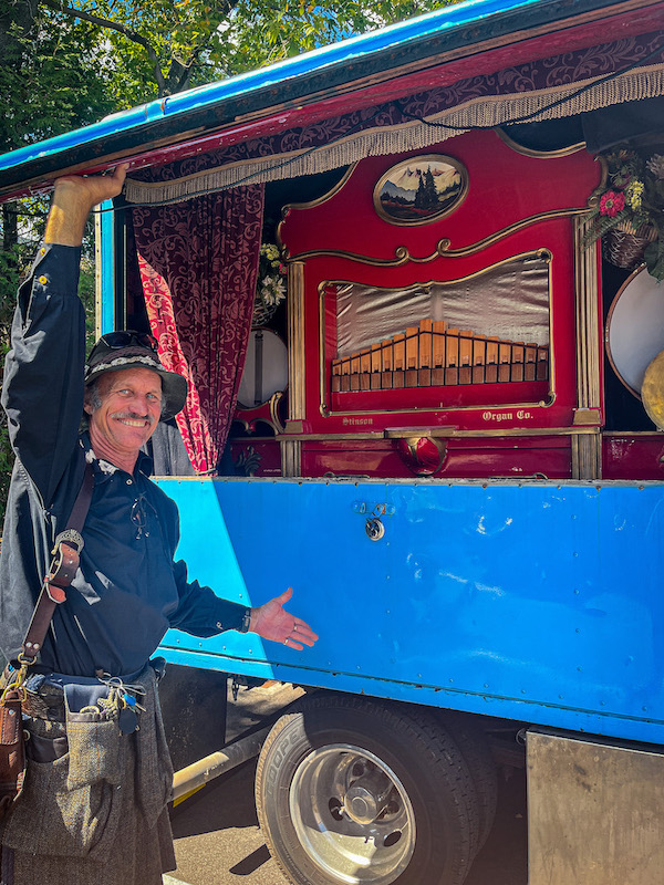 Over the State border in to Kentucky, to Fort Mitchell for the Vent Haven ventriloquist museum. Parking alongside us is Brent. Brought up by Irish/German circus performers he’s a magician and Punch and Judy show performer who lives and travels in his blue truck… in which he’s also got a fairground organ!!! He opens up the back to show us. A return visitor to the ventriloquist museum, I didn’t expect to hear a lilting Irish accent from the first person we met in Kentucky. In his custom made kilt of many pockets, twinkling blue eyes and full of the Irish charm, Brent is a wonderful character full of wit and grace.