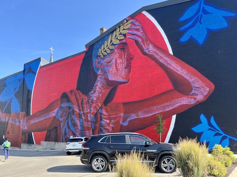 From the museum we’re back over the border in to Ohio driving in to nearby Cincinnati to explore the historic neighbourhood of Over-The-Rhine, a former working class German neighbourhood. The neighborhood lies north of the old Miami-Erie Canal which the German immigrants summoning memories of home, referred to as the Rhine River. I wasn’t previously aware of the German history in Cincinnati, they even have an annual Oktoberfest. Handsome 19th century architecture, lots of stunning streetart murals, boutique shops, craft breweries, cafes and restaurants. We were told that it used to be a run down area with a dangerous reputation…it’s looking revitalised as more money is invested.