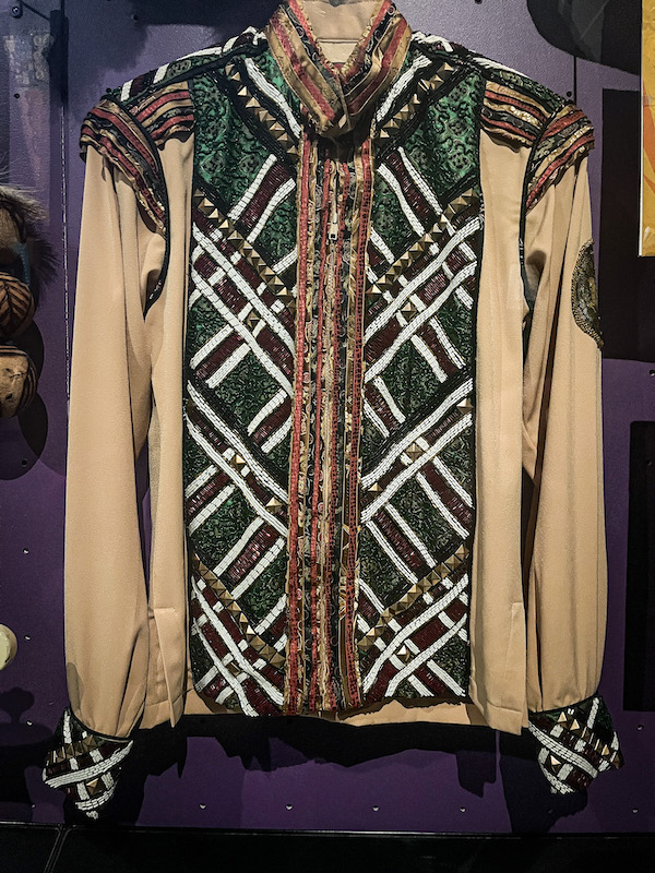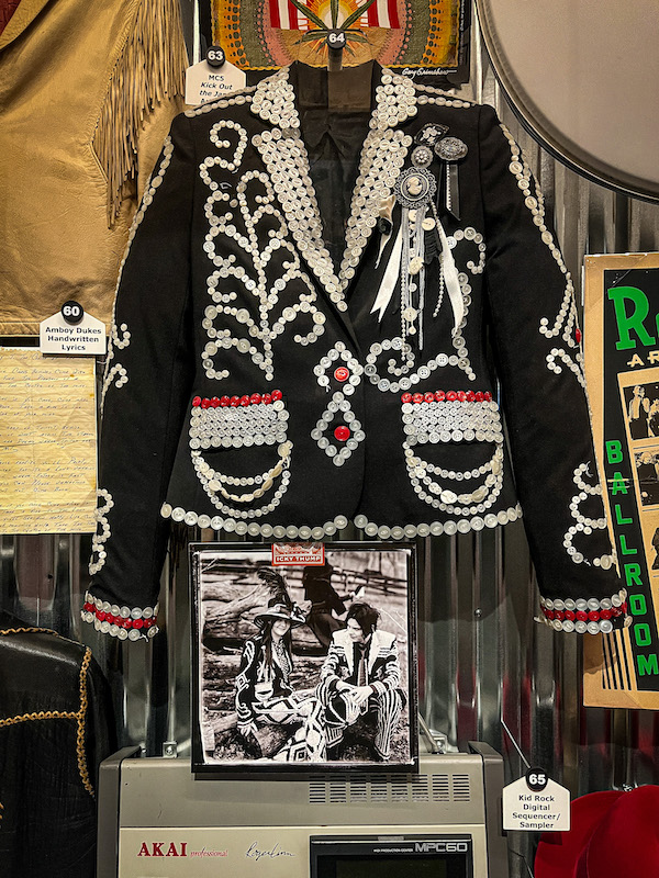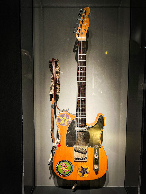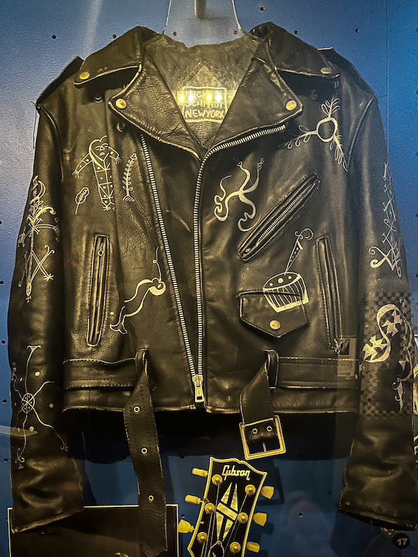 Iggy’s leather jacket, The Clash flyers and Joe Strummer’s guitar…and Meg White’s (The White Stripes) pearly queen jacket.