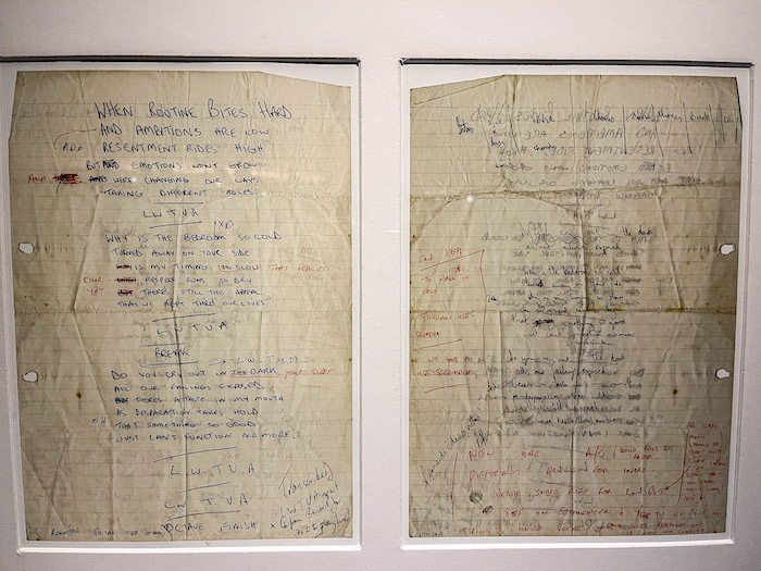 Handwritten lyrics for ‘Love will Tear us Apart’ by Joy Division. This place needs a major facelift. At $30 a ticket the cold 80s interior the crap cafe and cheap cotton t-shirts selling at a whopping $45 each, is a mess. The Country Music Hall of Fame in Nashville is far better designed.