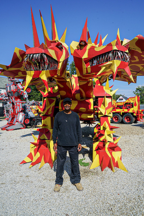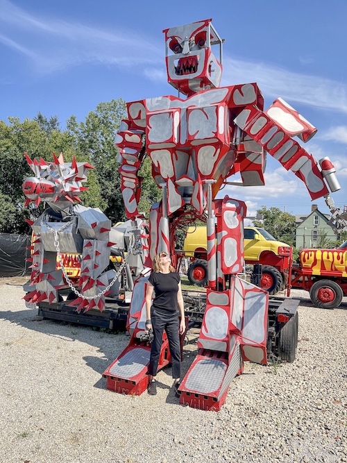 We were feeling a little disillusioned about Cleveland but meeting Tim Willis turned that around and then some. I don’t know where to start with Tim… he blew our minds. He has the most extraordinary brain, totally self taught. We pulled up just expecting to view some of his giant creations from the side of the road being as they are all on his private property behind chainlink fencing….but Tim gave up 90 minutes of his time to show us around.