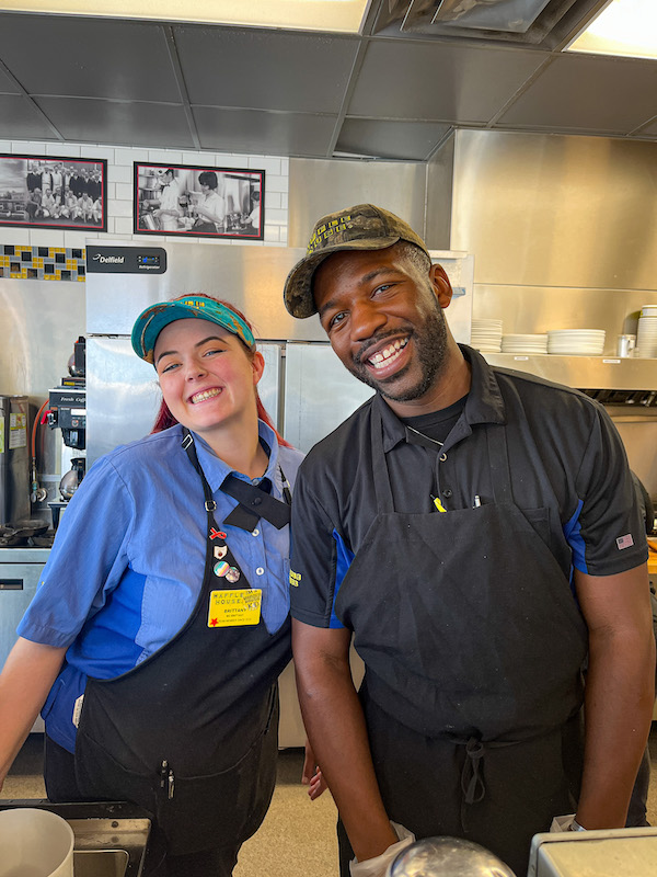 Leaving Nashville Indiana we drive 115 miles to dip in to northern Kentucky at Fort Mitchell. Following the green highway of West State Road 46 through Gnaw Bone, Clarksdale, Stoney Lonesome to Columbus. Through Newburn and Hartsville where Clift Creek ribbons in blue on the map. Miles of corn, sun blazing across the fields at 10.30 in the morning. A grocery store called Hillbilly Corner. At Batesville we drive over Little Laughery Creek. Roadsign: ‘Value All Children Like Jesus Does’. Dave and I have a well established roadtrip game where we compete to shout out ‘Waffle House!’ when we see a sign. Ridiculously we still haven’t eaten at one so on crossing from Indiana in to Ohio (my 45th State) Dave shouts out ‘Waffle House!’ in Colerain Township and we pull in to break our Waffle House cherry. We meet servers Britney and Titus who I tell it’s our first time, tell them our roadtrip game…Dave saying I was perhaps a bit too effusive about the occasion hah. Britney said they’re open 24 hours 7 days a week 365 days a year. Hey if it was good enough for Anthony Bourdain. It was a fantastic fluffy syrupy treat.