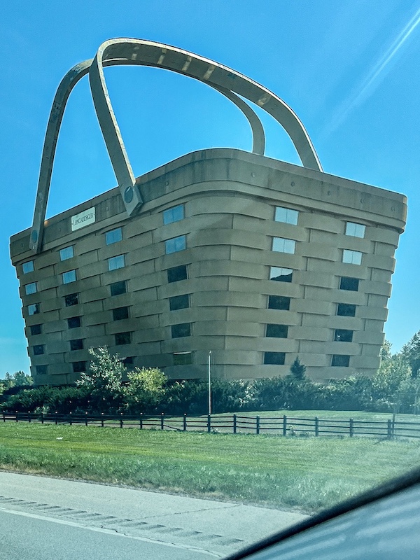 Back on the road following I-71 heading for the Amish communities of Ohio. Over the Jeremiah Morrow Bridge crossing the Little Miami river. Bypassing Columbus for the smaller places. Passing Buckeye RV sales…Indiana and Ohio seem to be the main states in which to buy an RV. We pass a giant Longaberger picnic basket in Newark disguising offices. It allegedly cost the founder Dave Longaberger $32 million to build back in 1997 but sadly things went sideways, the building was vacated in 2016 and plans for a luxury hotel to buy it never worked out.