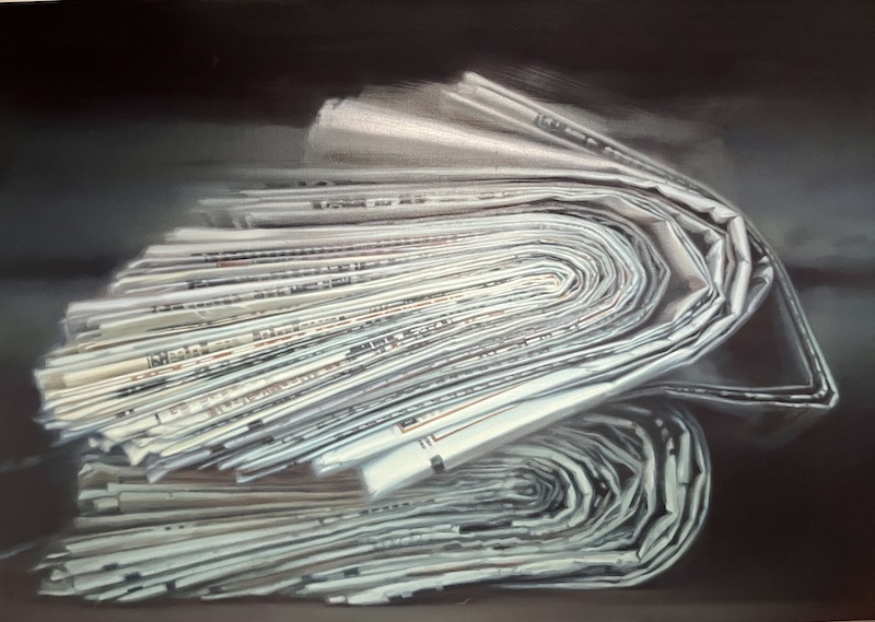 A painting of folded newspapers by Xiaoze Xie is stunning.