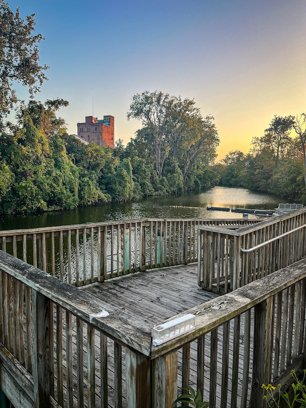 I have a bit of a thing for bridges…especially old rusting workhorses. The gorgeous Cuyahoga Jack Knife Bridge 464 has been fitted with a boardwalk and left permanently in its lifted position overlooking the Cuyahoga River. A photographer was there waiting for a client. Vines clamber over rusting steel, beauty in decay. We stay in the area, eat at Lindey’s Lake House on Old River Road…looking out across the water as the sun lowers.