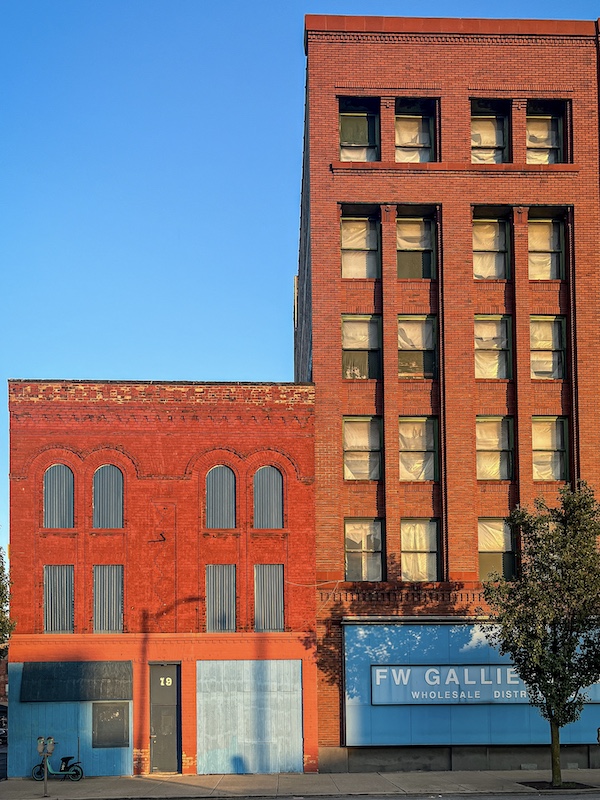 To the Warehouse District around South Huron where low evening sun gloams across the red brick glittering across windows painting everything with a warm brush.