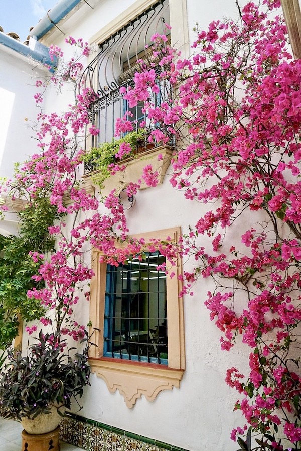 Outside it’s getting hotter…we take a slow wander of the Jewish quarter where simple white-washed houses with interior courtyards are filled with flowers. The shocking pink of papery Bougainvillea climbing the walls, potted plants tumbling flowers from iron balconies. Some buildings emulating the arches of the mosque.