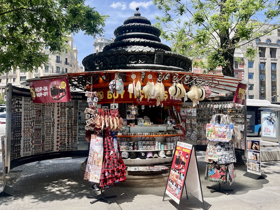 One of my favourite sights in the city are the ingenious kiosks selling snacks, tourist trinkets, sunhats, drinks…designed to open wide like embracing arms displayed with wares which close to lock around the contents securely at night. And the many attractive tapas bars with decoratively tiled facades.