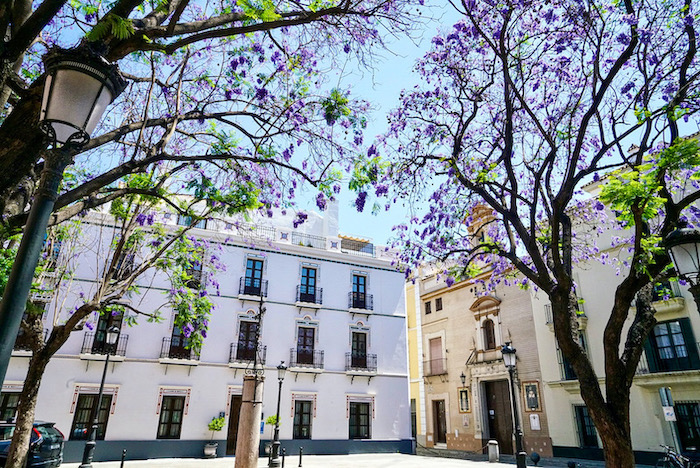 The following morning we’re woken early by construction workers in the apartment next door, our Airbnb demands video evidence of the sound. Luckily they acquiesce and refunded we find a beautiful hotel on a quiet cobbled square filled with heavily scented jacaranda trees in full bloom. Hotel Vincci Molviedro is perfect, the staff are welcoming and fun, our room and bathroom combined are larger than our Brooklyn apartment. Bliss.