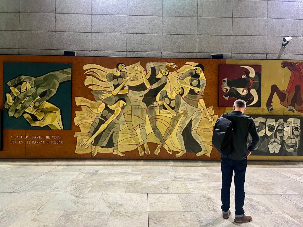 At the airport to fly back to New York, Madrid gives us one last hit of art with this great mural by Miguel Hernandez. We’ve had a fantastic trip, met interesting fun people, been bowled over by art architecture culture food. If planning this trip again we’d come at a cooler time of year…autumn or winter months. We’d stick to our tried and tested roadtrips, using a car; whilst travelling by train was great (less stress/shorter travel times) we were limited by train schedules and lost the freedom of exploring outside the cities. Having visited Spain several times and explored the famous cities I’d like to return to explore the north and drive through villages and small towns. Spain is always a fabulous time.