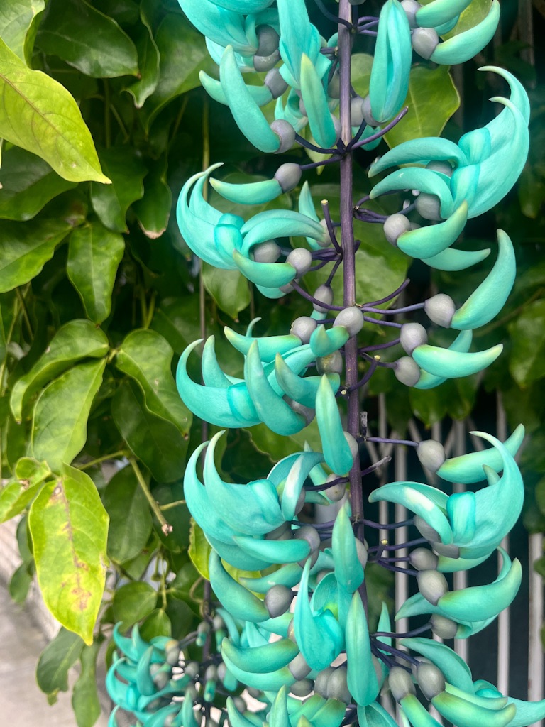 And to our Airbnb which is eccentric, in an area of settled jungle. It’s worn, everything a little tired, the cooker hob is rusted and Dave scrubs the coffee pot clean which isn’t ideal. There’s steep stairs to negotiate in the middle of the night. Around the house, banana trees, ferns exotic waxy flowers, orchids flourish here in the wet humid environment. It’ll do us fine for a few days.
