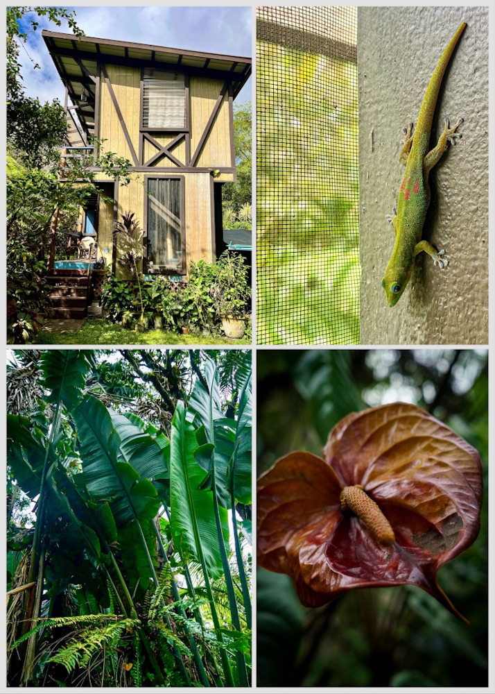 April 15. Fly 1 hour Honolulu to Hilo on the Big Island, quieter, less tourist development. Pick up a hire car to drive to Pahoa. We’ll get rain on an island of volcanoes and rainforest, I’m craving greenery.